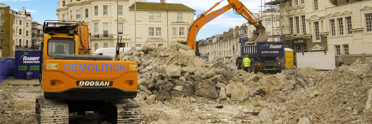 Rabbit provides complete demolition services for domestic, commercial and industrial projects across the South East. From garages and outbuildings to complex structural demolitions, we plan carefully, work safely and minimise disruption.