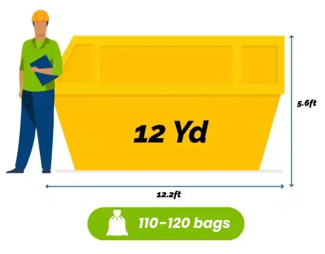 Volume: 12 Cubic yard (9.17 Cubic Metres) approximately 110-120 black bags